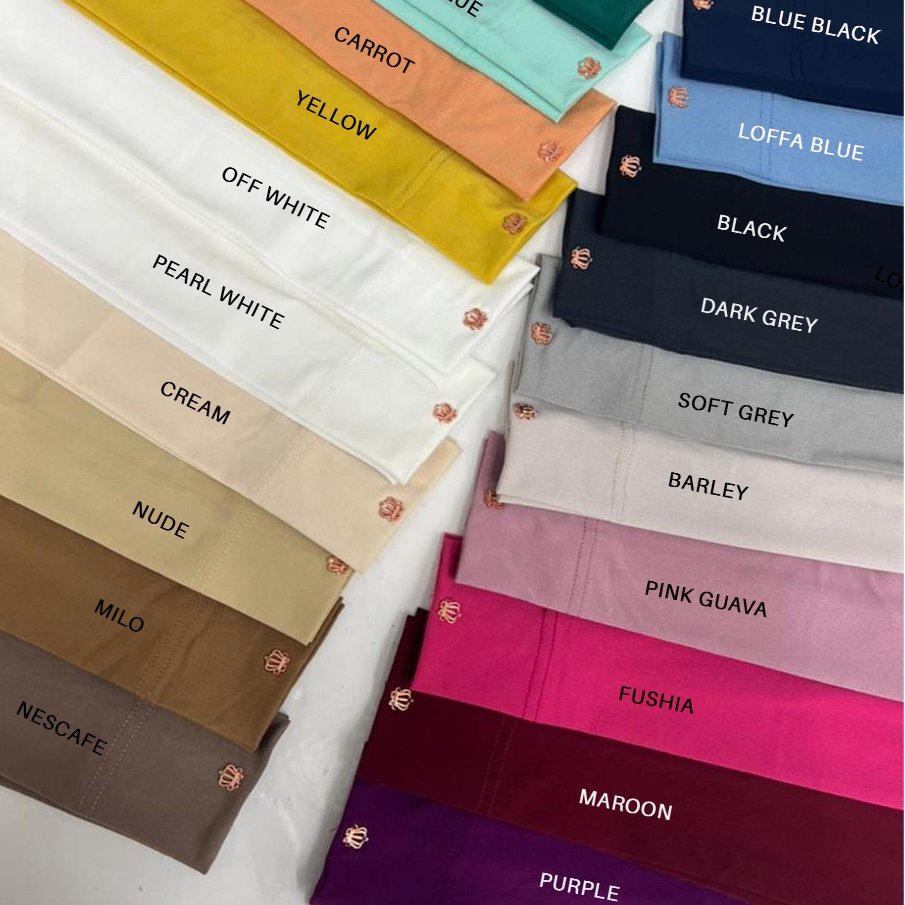 | Variation | emerald, tiffany blue, carrot, yellow, off white, cream, nude, milo, nescafe, dark blue, loffa blue, dark grey, soft grey, barley, guava pink, fuschia, meroon, purple |